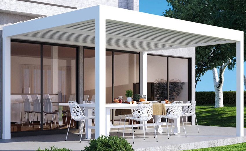 De lamellen daken van de Woonzaken zijn gemaakt van aluminium, dit zorgt voor een luxueuze uitstraling en gaat ontzettend lang mee.